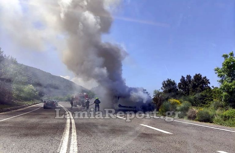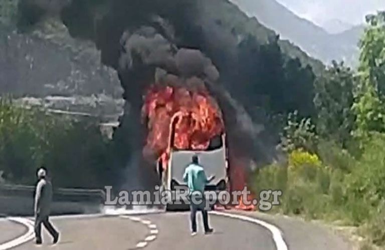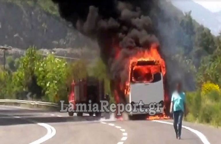 Όπως, μεταδίδει το lamiaReport, το λεωφορείο ανεβαίνοντας τις στροφές του Μπράλου, στη μονή Δαμάστας, άρχισε να βγάζει καπνούς, ενώ γρήγορα τυλίχθηκε στις φλόγες.