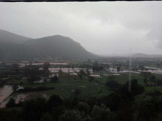 «Ύστερα από της τελευταίες έντονες βροχοπτώσεις των τελευταίων ημερών (βρέχει ασταμάτητα από το προηγούμενο Σάββατο ) ένα πολύ μεγάλο μέρος του κάμπου έχει μετατραπεί σε λίμνη. Χιλιάδες στρέμματα και μαντριά έχουν “πνιγεί” και οι ζημιές είναι τεράστιες.