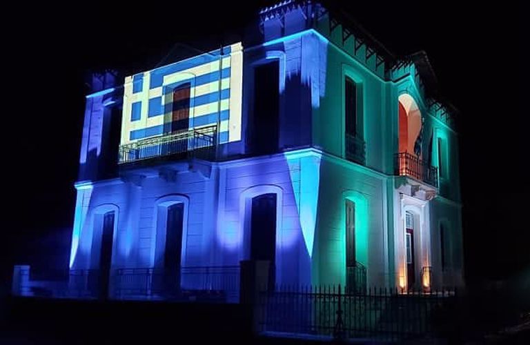 - Το κτίριο από την μια φωτίστηκε στα χρώματα της γαλανόλευκης και από την άλλη όψη με πράσινο φωτισμό κάνοντάς το να φαίνεται εντυπωσιακό και να τραβά τα βλέμματα όλων όσων περνούσαν.