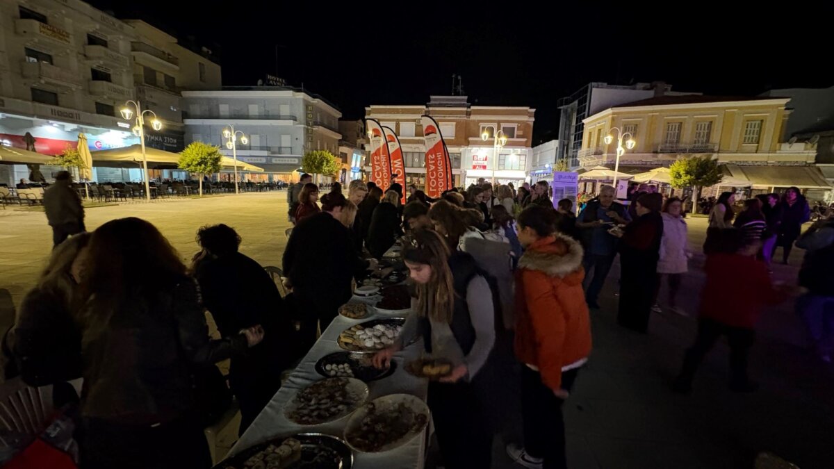 Οι φοιτητές και οι καλεσμένοι απόλαυσαν τοπικές λιχουδιές και αναψυκτικά, προσφορά του Συλλόγου Γυναικών «Άρτεμις», δημιουργώντας μια ευχάριστη γιορτινή ατμόσφαιρα στην Κεντρική Πλατεία της πόλης.