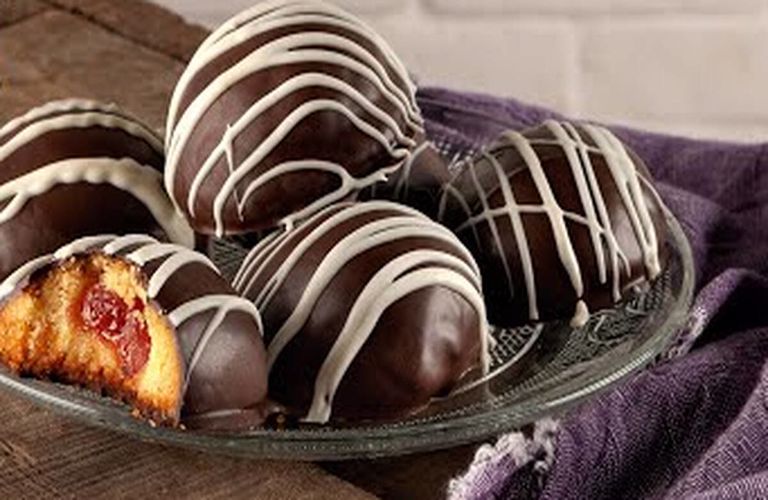 - Αφήνουμε να κρυώσουν και τα βουτάμε σε λιωμένη κουβερτούρα. Αφήνουμε να στεγνώσουν, κάνουμε γραμμές με τη λευκή κουβερτούρα και σερβίρουμε.