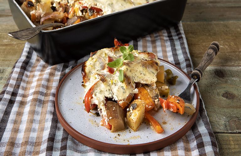 Ψήνουμε στον προθερμασμένο φούρνο για 40-45 λεπτά, μέχρι να μαλακώσουν όλα τα λαχανικά.