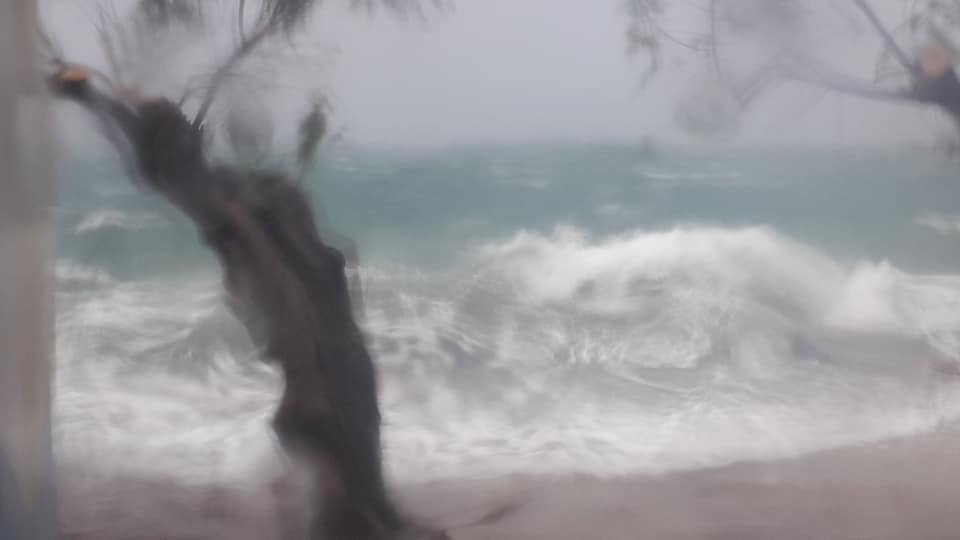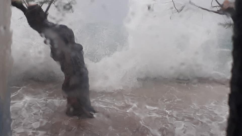 Η θάλασσα έχει φουσκώσει στον Μύτικα και τεράστια κύματα χτυπούν τον πάνω Μύτικα