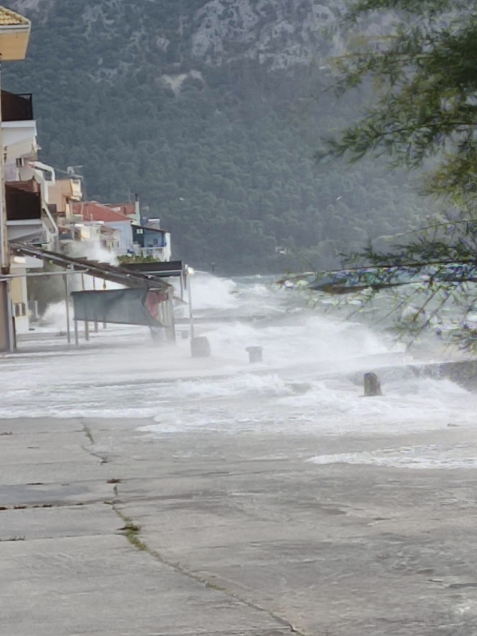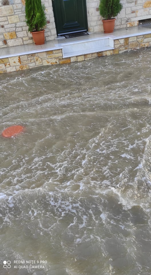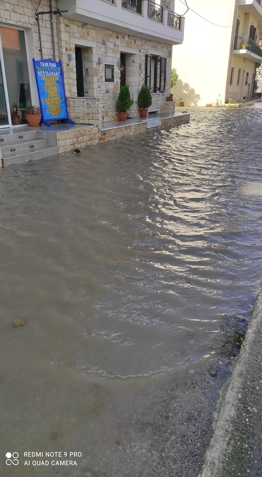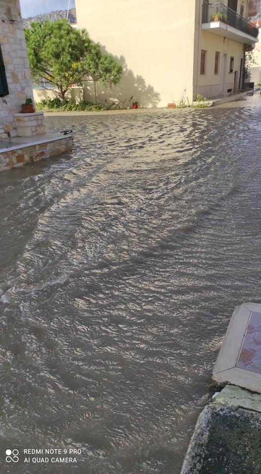 Η ράμπα της πλωτής στον πάνω Μύτικα δεν άντεξε στα κτυπήματα των σημερινών κυμάτων, τα οποία είναι πολύ μεγάλα λόγω της φουσκοθαλασσιάς. Τα κύματα περνάνε τα κρηπιδώματα και βγαίνουν στον δρόμο. Τα φρεάτια που υπάρχουν είναι αδύνατο να διώξουν τα θαλασσινά νερά και όπου δεν υπάρχουν φρεάτια δημιουργείτε πρόβλημα.