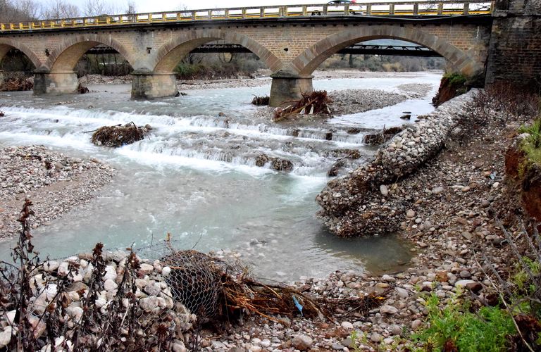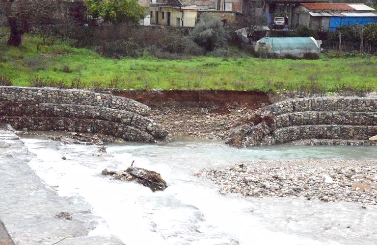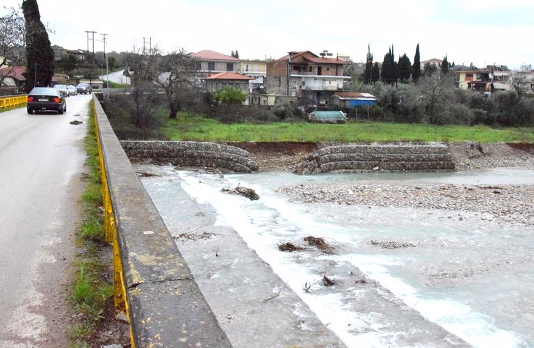 - Η ζημιά όμως έγινε με την καταστροφή μέρους των τοιχείων της όχθης κοντά στη γέφυρα της Νέας Αβόρανης.