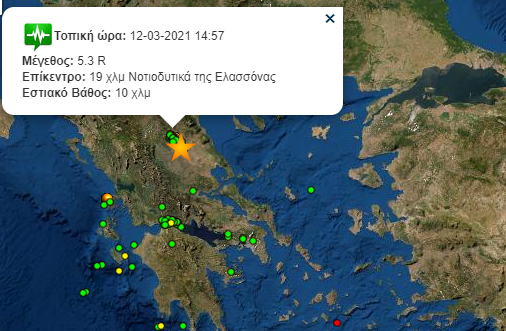 - Μία νέα ισχυρή σεισμική δόνηση σημειώθηκε τρία λεπτά πριν τις 15:00 το μεσημέρι με μέγεθος 5,3 βαθμών της κλίμακας ρίχτερ, 19 χιλιόμετρα Νοτιοδυτικά της Ελασσόνας. Το εστιακό βάθος εντοπίζεται στα 10 χιλιόμετρα.