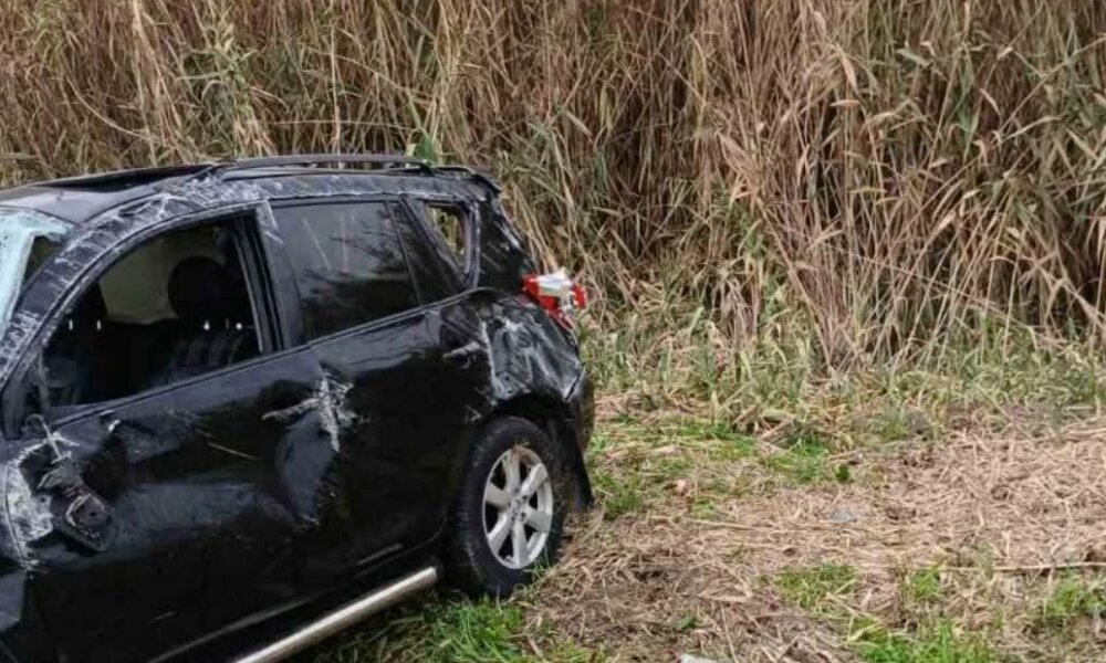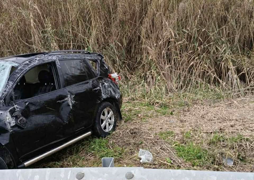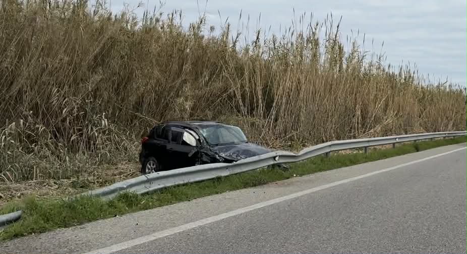 Ήταν μάλιστα τόσο σφοδρή που το Ι.Χ. «απογειώθηκε» και κατέληξε εκτός οδοστρώματος, μέσα σε καλαμιές, σε παρακείμενο χωράφι.