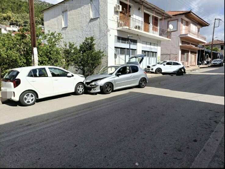 Δύο αυτοκίνητα που κινούνταν με κατεύθυνση προς το Αγρίνιο συγκρούστηκαν μεταξύ τους, ενώ στη συνέχεια το ένα εξ’ αυτών προσέκρουσε σε σταθμευμένο όχημα.