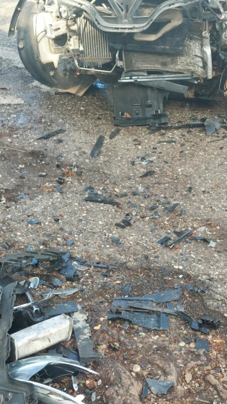 Είναι τέτοια η σφοδρότητα της πρόσκρουσης που η μηχανή έγινε σμπαράλια, όπως φαίνεται στις φωτογραφίες…