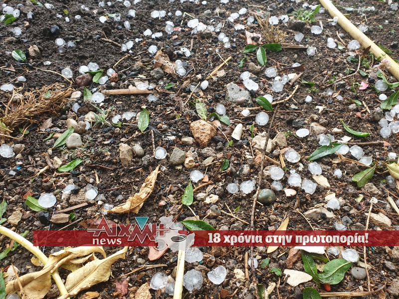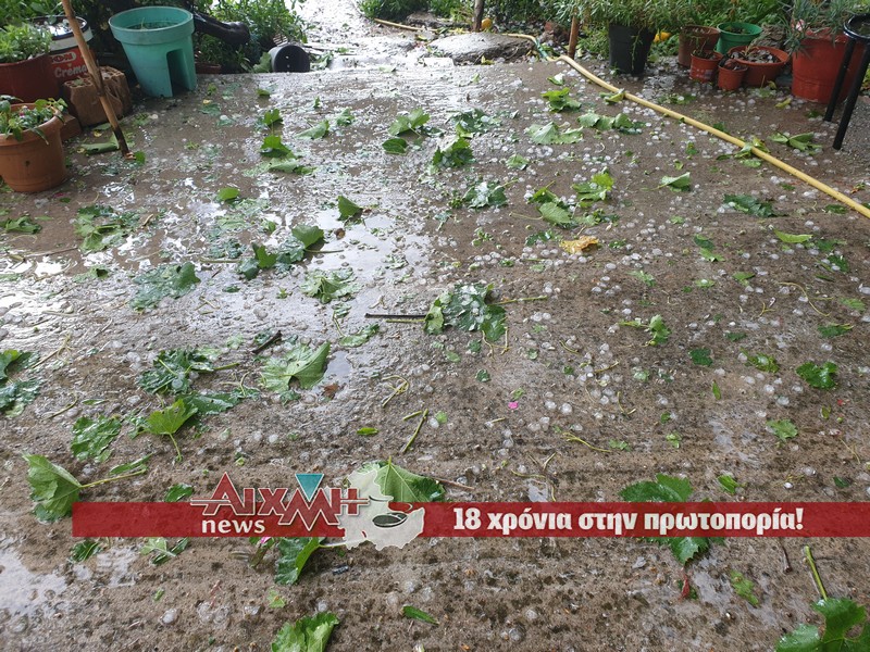 Επί 10 λεπτά έριχνε σε μέγεθος καρυδιού. Το φαινόμενο δεν έχει σταματήσει, μαζί με την βροχή που πέφτει κατά διαστήματα ρίχνει και μικρούς «βράχους».