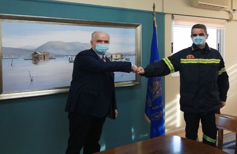 Με τους νέους Διοικητές Πυροσβεστικής Υπηρεσίας Αιτωλοακαρνανίας Πύραρχο Χρήστο Καλογερόπουλο και Μεσολογγίου Αντιπύραρχο Παναγιώτη Στούμπο συναντήθηκε σήμερα στο Γραφείο του ο Δήμαρχος Ι.Π. Μεσολογγίου.
