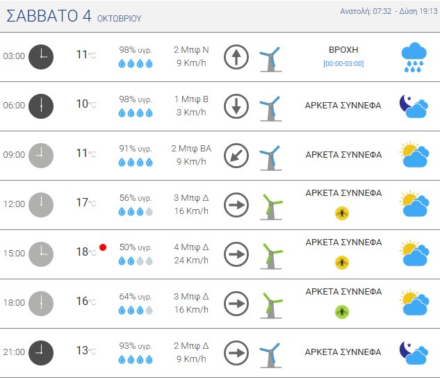 Το Σάββατο, 4 Οκτωβρίου 2025 αναμένονται σποραδικές βροχές κατά τόπους έως το μεσημέρι. Χαμηλές για την εποχή θερμοκρασίες. Άνεμοι έως 6 μποφόρ στα πελάγη.