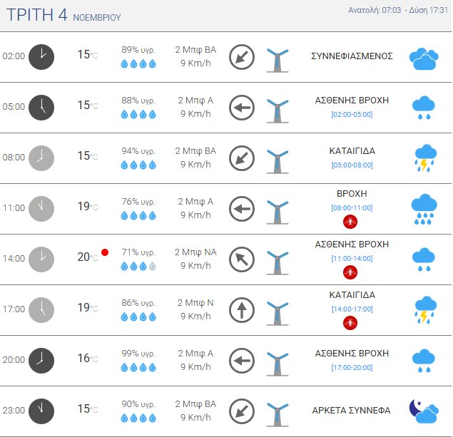Την Τρίτη, 4 Νοεμβρίου 2025 αναμένονται βροχές και καταιγίδες στο Αγρίνιο και η θερμοκρασία έως τους 20 βαθμούς Κελσίου!