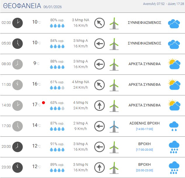 Την Τρίτη, 6 Ιανουαρίου 2026 αναμένεται συννεφιά και βροχοπτώσεις στο Αγρίνιο και η θερμοκρασία έως τους 17 βαθμούς Κελσίου!