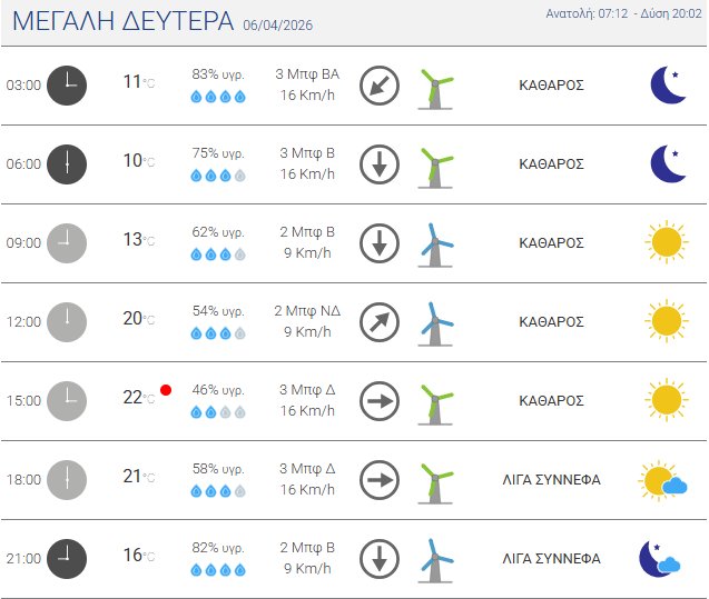 Τη Μεγάλη Δευτέρα, 06 Απριλίου 2026 αναμένεται ηλιοφάνεια τη Μεγάλη Δευτέρα στο Αγρίνιο και η θερμοκρασία έως τους 22 βαθμούς Κελσίου!