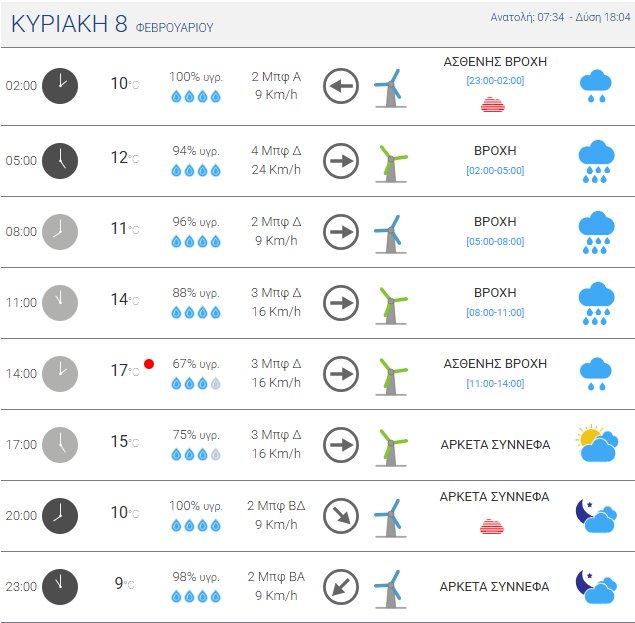 Πιο αναλυτικά, την Κυριακή, 8 Φεβρουαρίου 2026 στα Επτάνησα, στα Δυτικά Ηπειρωτικά, στα Νησιά του Ανατολικού Αιγαίου και σε τμήματα των Δωδεκανήσων αναμένονται βροχές και μεμονωμένες καταιγίδες, με βελτίωση από το απόγευμα.