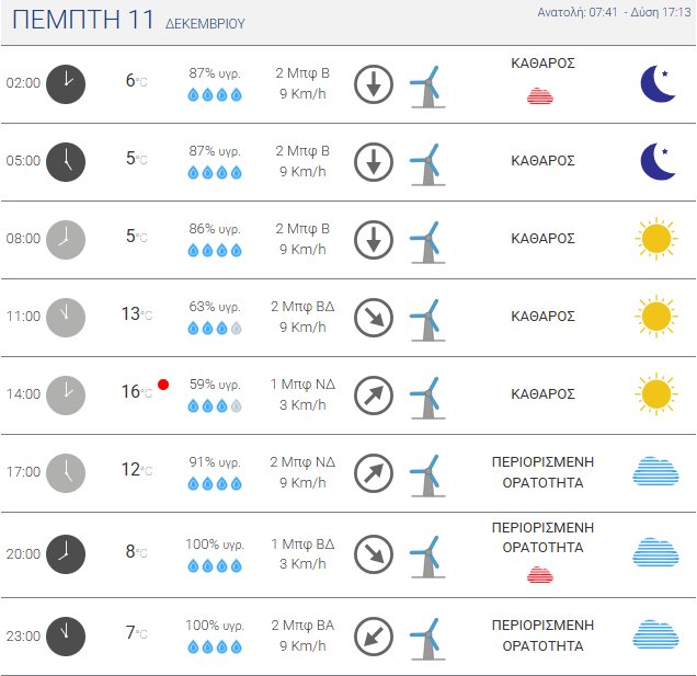 Η θερμοκρασία στο κέντρο των Αθηνών θα κυμανθεί από 11 έως 17 βαθμούς Κελσίου.