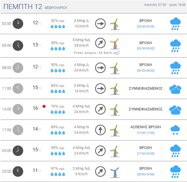 Πιο αναλυτικά, την Πέμπτη, 12 Φεβρουαρίου 2026 αναμένονται αρχικά βροχές και τοπικές καταιγίδες κυρίως στο Αιγαίο, ενώ τοπικές βροχές αναμένονται στα Ηπειρωτικά με πρόσκαιρη βελτίωση πριν τις μεσημβρινές ώρες.