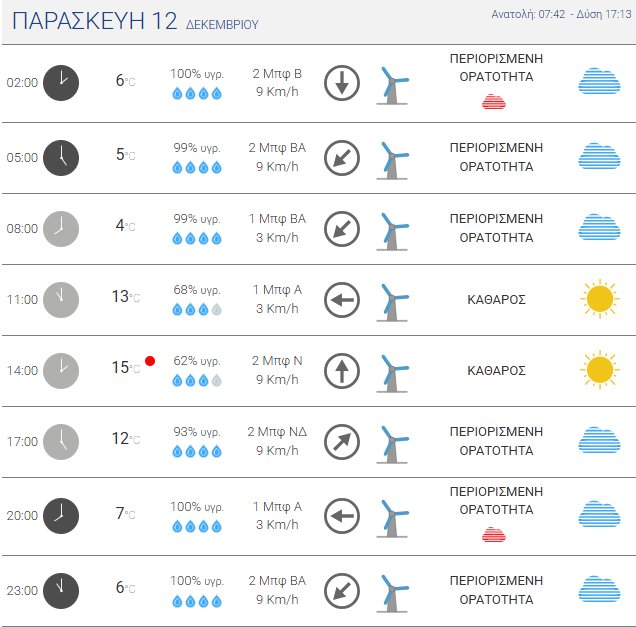 Την Παρασκευή, 12 Δεκεμβρίου 2025 αναμένεται γενικά αίθριος καιρός.