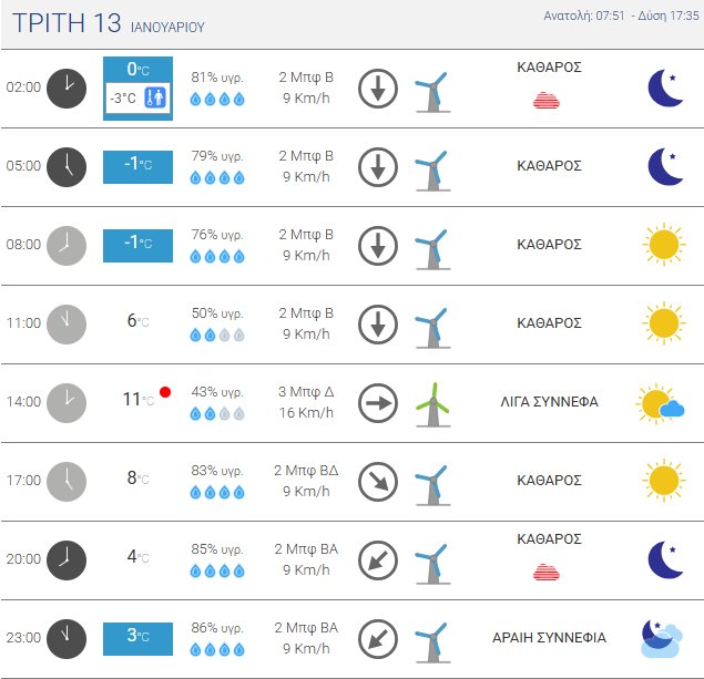 Πιο αναλυτικά, την Τρίτη, 13 Ιανουαρίου 2026 σε ολόκληρη τη χώρα αναμένεται ηλιοφάνεια με λίγες τοπικές νεφώσεις.