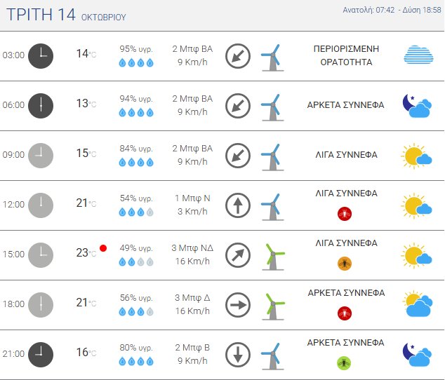 Νεφώσεις με τοπικές βροχές κυρίως στην Πελοπόννησο, τα Δωδεκάνησα και την Κρήτη.