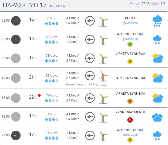 Οι άνεμοι βορειοανατολικοί και από το μεσημέρι νοτιοανατολικοί 2 με 3 μποφόρ.