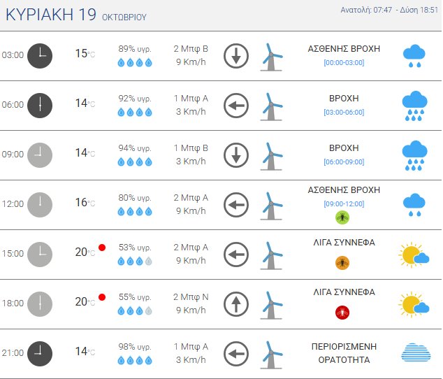 Πιο αναλυτικά την Κυριακή, 18 Οκτωβρίου 2025, προβλέπονται νεφώσεις με τοπικές βροχές στη χώρα, σποραδικές καταιγίδες στην Πελοπόννησο και αργά το βράδυ στις Κυκλάδες.