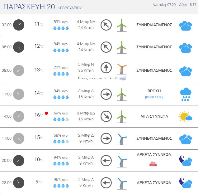 Για την Παρασκευή, 20 Φεβρουαρίου 2026 προβλέπονται αρχικά νεφώσεις στο μεγαλύτερο μέρος της χώρας, οι οποίες θα είναι πυκνότερες στα δυτικά τμήματα, όπου θα εκδηλώνονται βροχές και καταιγίδες σε Ήπειρο, Ιόνιο, Δυτική Ελλάδα και Δυτική Πελοπόννησο από νωρίς το πρωί.