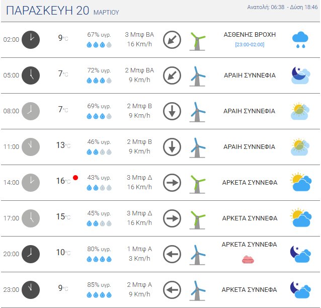 Την Παρασκευή, 20 Μαρτίου 2026 αναμένονται φαινόμενα κυρίως στα ανατολικά και νότια. Χαμηλές για την εποχή θερμοκρασίες. Άνεμοι έως 8 μποφόρ στο Αιγαίο.