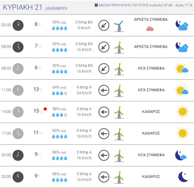 Πιο αναλυτικά, την Κυριακή, 21 Δεκεμβρίου 2025 στην Κρήτη, στα Δωδεκάνησα, και σε τμήματα των Κυκλάδων αναμένονται βροχές και σποραδικές καταιγίδες.