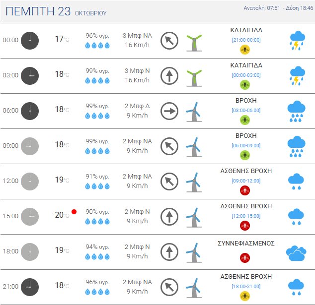 Την Πέμπτη, 23 Οκτωβρίου 2025 αναμένονται βροχές και καταιγίδες.