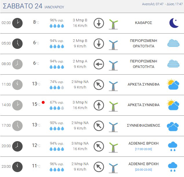 Πιο αναλυτικά, το Σάββατο, 24 Ιανουαρίου 2026 προβλέπονται βροχές τις πρώτες πρωινές ώρες στην Ανατολική Αττική, την Ανατολική και Νότια Πελοπόννησο, την Εύβοια, την Κρήτη, στα Νησιά του Αιγαίου, βαθμιαία στη Δυτική χώρα και τα Βόρεια Ηπειρωτικά.