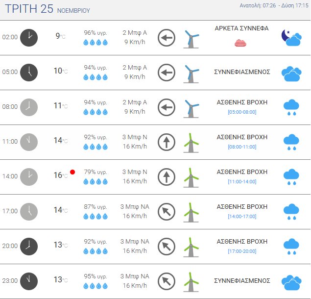 Την Τρίτη, 25 Νοεμβρίου 2025 αναμένεται ασθενής βροχόπτωση στο Αγρίνιο και η θερμοκρασία έως τους 16 βαθμούς Κελσίου!