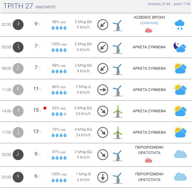 Την Τρίτη, 27 Ιανουαρίου 2026 αναμένονται βροχές και καταιγίδες.