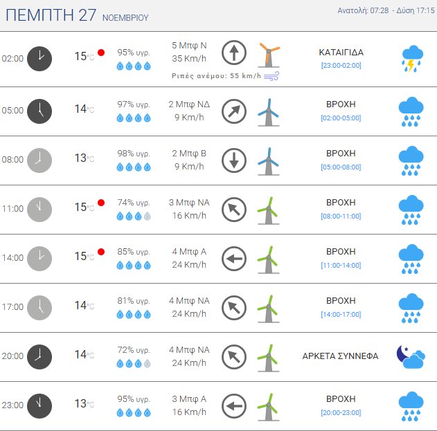 Πιο αναλυτικά, την Πέμπτη, 27 Νοεμβρίου 2025 έντονες και τοπικά πολύ έντονες βροχοπτώσεις και καταιγίδες θα εκδηλώνονται κατά περιόδους στα Επτάνησα, στα Δυτικά Ηπειρωτικά, στην Πελοπόννησο, στην Ανατολική Μακεδονία και στη Θράκη, συνοδευόμενα κατά τόπους από χαλαζοπτώσεις.
