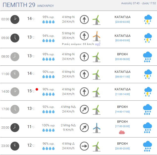 Την Πέμπτη, 29 Ιανουαρίου 2026 αναμένονται βροχές και καταιγίδες.