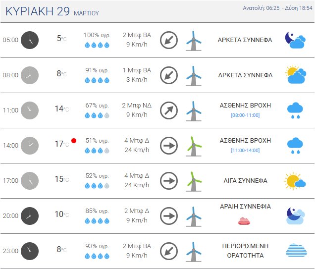 Πιο αναλυτικά, την Κυριακή, 29 Μαρτίου 2026 αναμένεται άστατος στα δυτικά και νότια ηπειρωτικά, στην Κρήτη και κυρίως στην Ανατολική Μακεδονία, στη Θράκη, στα νησιά του Ανατολικού Αιγαίου και στα Δωδεκάνησα. Σποραδικές καταιγίδες θα εκδηλωθούν κυρίως στα νησιά του Ανατολικού Αιγαίου και στα Δωδεκάνησα. Λίγα χιόνια θα πέσουν σε ορεινά τμήματα της ηπειρωτικής χώρας.