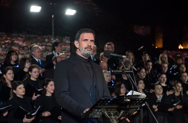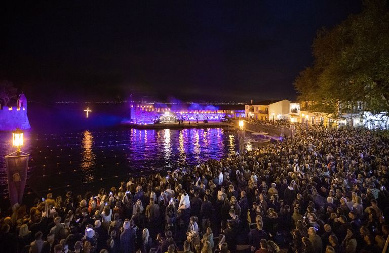Η θρησκευτική πομπή των Επιταφίων των δύο κεντρικών Ενοριών, του Ιερού Μητροπολιτικού Ναού Αγίου Δημητρίου και του Ιερού Ναού Αγίας Παρασκευής, συνοδεία της Παπαχαραλαμπείου Δημοτικής Φιλαρμονικής, καταλήγει στο Ενετικό Λιμάνι της πόλης, όπου δεκάδες αναμμένες δάδες έχουν τοποθετηθεί στις πολεμίστρες, ο φλεγόμενος σταυρός στέκει επιβλητικός στην είσοδο του Λιμανιού και η ατμόσφαιρα κυριαρχείται από τους Ύμνους της Ημέρας, που ερμηνεύονται από τη Μικτή Χορωδία Ναυπάκτου. Φέτος, η Μικτή Χορωδία Ναυπάκτου συνέπραξε με τη Μικτή Χορωδία Cantelena υπό τη διεύθυνση της μαέστρου, Ελένης Παπαδοπούλου-Αραβαντινού. Σολίστ η καταξιωμένη υψίφωνος Τζίνα Φωτεινοπούλου, συμμετείχαν οι πιανίστες Ηλίας Καλούδης και Γιώργος Κονής, ενώ στην αφήγηση και την απαγγελία ήταν ο ηθοποιός Λεωνίδας Κακούρης.