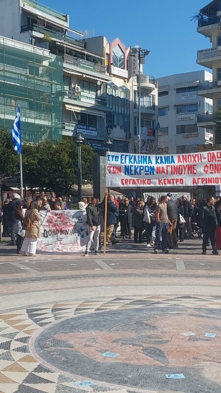 Στην Πλατεία Δημοκρατίας το πρωί του Σαββάτου, 28 Φεβρουαρίου 2026 πραγματοποιήθηκε συλλαλητήριο από το Εργατικό Κέντρο Αγρινίου για τα 3 χρόνια από την Τραγωδία των Τεμπών.