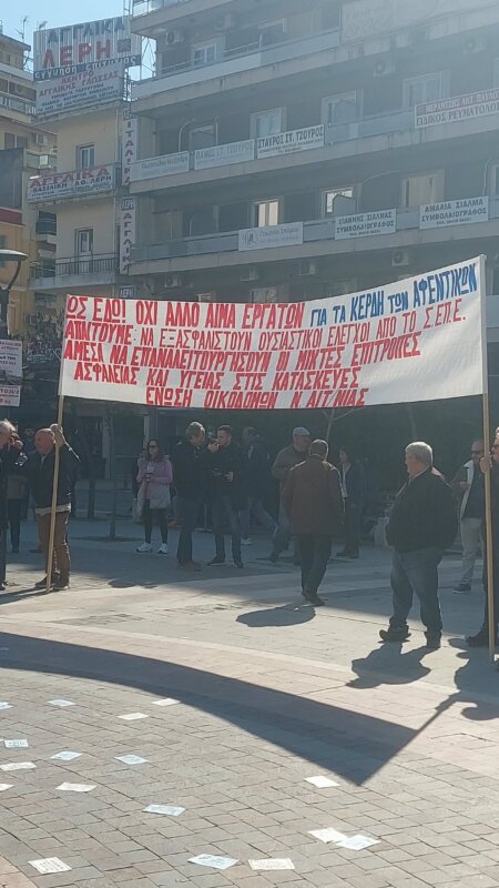 Εκπρόσωποι του Εργατικού Κέντρου που διοργάνωσε την κινητοποίηση και Σωματείων Εργαζομένων, Φοιτητές, Μαθητές και Δημότες ήταν εκεί από νωρίς…