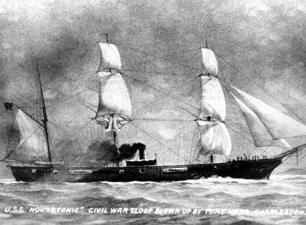 Κατά τη διάρκεια του αμερικανικού εμφυλίου, το υποβρύχιο των νοτίων «Χάνλεϊ» επιτίθεται κατά του πολεμικού «Χαουζοτόνικ» των βορείων. Και τα δύο καταλήγουν στο βυθό. Πρόκειται για την πρώτη ναυμαχία ανάμεσα σε υποβρύχιο και πλοίο επιφανείας.
