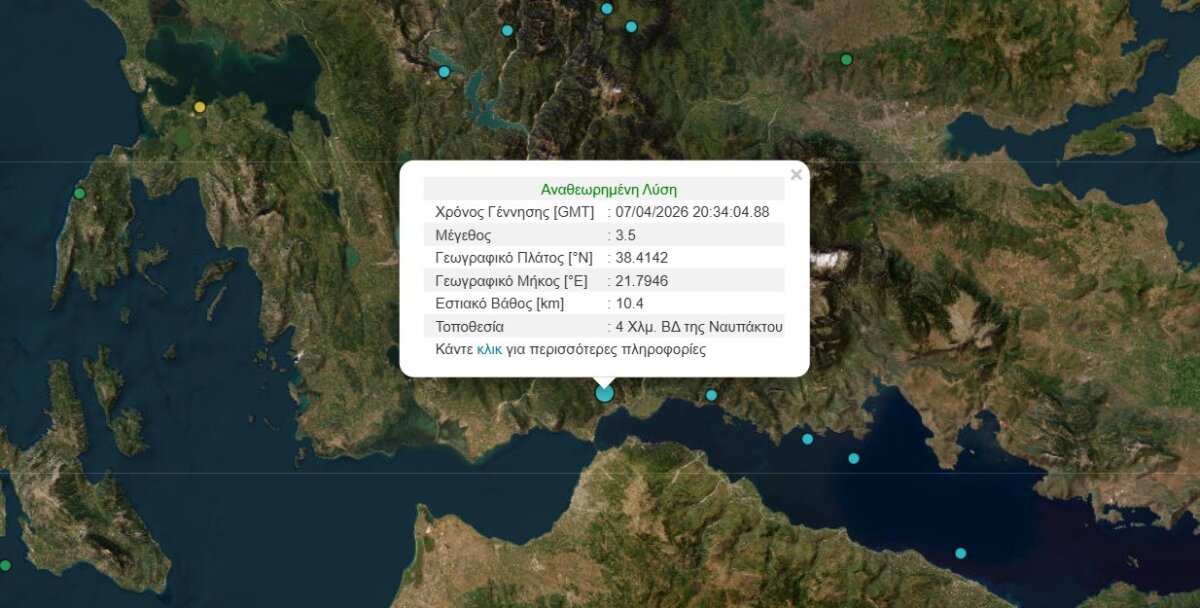 Σεισμός με επίκεντρο τη Ναύπακτο αναστάτωσε τους κατοίκους των γύρω περιοχών αργά το βράδυ της Μεγάλης Τρίτης, 7 Απριλίου 2026.