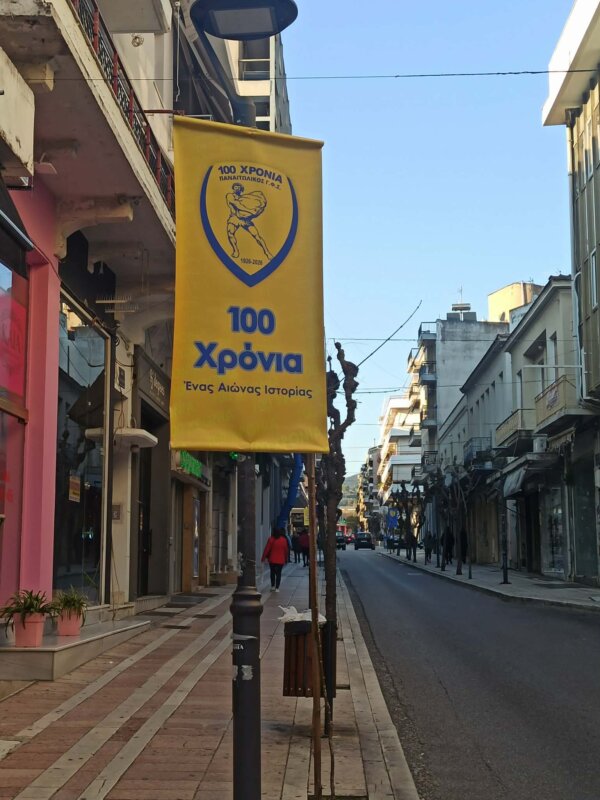 Σημαιοστολισμός του κέντρου της πόλης για τα 100 Χρόνια Παναιτωλικός από την Παρασκευή, 27 Φεβρουαρίου 2026 ενώ την 1η Μαρτίου θα στηθεί και περίπτερο στην Πλατεία Δημοκρατίας.
