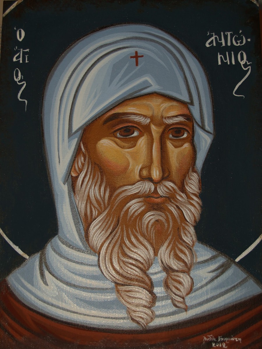 Ο Μέγας Αντώνιος γεννήθηκε το 251 μ.Χ. στην Άνω Αίγυπτο από πλούσιους και ενάρετους γονείς, τους οποίους έχασε σε νεαρή ηλικία. Συγκεντρώνει όμως την προσοχή του στην μυστική θεωρία των μοναχών της ερήμου και στην φροντίδα της μικρής αδελφής του. Γρήγορα αποφασίζει να εγκαταλείψει τα εγκόσμια και αναχωρεί για την έρημο, αφού πρώτα τακτοποίησε την μικρότερη αδελφή του και μοίρασε την μεγάλη πατρική περιουσία στους φτωχούς της περιοχής του.