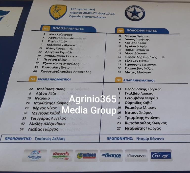 Νταμίρ Κάναντι και Τραϊανός Δέλλας κατέληξαν στις ενδεκάδες με τις οποίες θα ξεκίνησουν την αναμέτρηση στο πλαίσιο της 19ης αγωνιστικής της κανονικής διάρκειας του πρωταθλήματος της Super League 1.