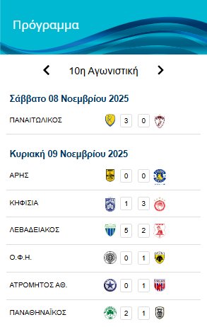 Αναλυτικά τα αποτελέσματα και η βαθμολογία της 10ης Αγωνιστικής καθώς και το πλήρες πρόγραμμα της 11ης Αγωνιστικής: