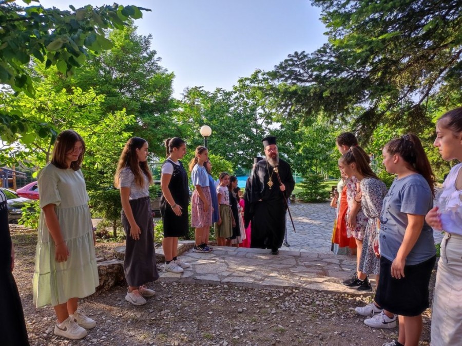 Ο Πρόεδρος της Χριστιανικής Ενώσεως κ. Λεωνίδας Γαρουφαλής, ο πνευματικός της Χριστιανικής Ενώσεως, Αρχιμ. Λαυρέντιος Καρανάσιος, η Αρχηγός της Κατασκηνωτικής Περιόδου κ. Χριστίνα Μερκούρη, τα στελέχη και οι κατασκηνώτριες επεφύλαξαν θερμή υποδοχή στον Ποιμενάρχη τους.