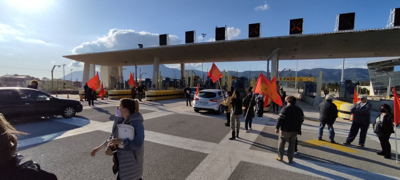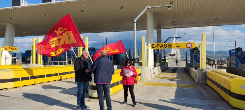 - Με σύνθημα “Όχι στην ακρίβεια-κατάργηση όλων των φόρων και των διοδίων για το λαό-Αυξήσεις στους μισθούς” οι ΤΕ Αχαΐας και Αιτωλοακαρνανίας του ΚΚΕ, προχώρησαν σε συμβολικό άνοιγμα των διοδίων στη γέφυρα Ρίου-Αντιρρίου και από τις δυο πλευρές, το απόγευμα της Τέταρτης. Μοιραστήκαν ανακοινώσεις του Κόμματος για της ακρίβεια στους διερχομένους οδηγούς που με κόρνες και ενθουσιασμό χαιρέτησαν την πρωτοβουλία των δυο Κομματικών Οργανώσεων. Παράλληλα μοιράστηκε υλικό εναντία στον νέο ιμπεριαλιστικό πόλεμο, ζητώντας την απεμπλοκή της χώρας απ’ αυτόν, να μην σταλεί κανένας Έλληνας φαντάρος, αξιωματικός ή υλικό εκτός συνόρων σε αποστολές στην Ουκρανία, τη Βουλγαρία ή όπου άλλου, να κλείσουν οι Αμερικανονατοϊκές βάσεις στη χωρά.
