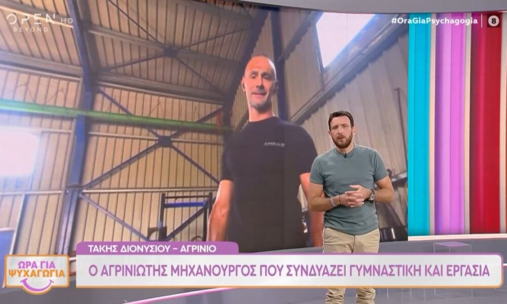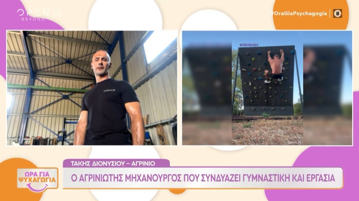 Ο Τάκης Διονυσίου είναι ο Αγρινιώτης Μηχανουργός που συνδυάζει γυμναστική και εργασία και μίλησε το μεσημέρι της 24ης Οκτωβρίου στο Open Beyond και την εκπομπή «Ώρα για Ψυχαγωγία».