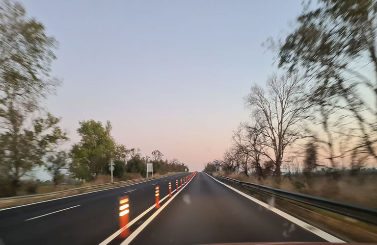 – περίπου σε ένα μήκος 10 χιλιομέτρων τα έργα ασφαλτόστρωσης και διαγράμμισης είναι σε εξέλιξη ενώ έχουν τοποθετηθεί προσωρινά κωρίνες στις θέσεις που θα μπουν κολωνάκια.